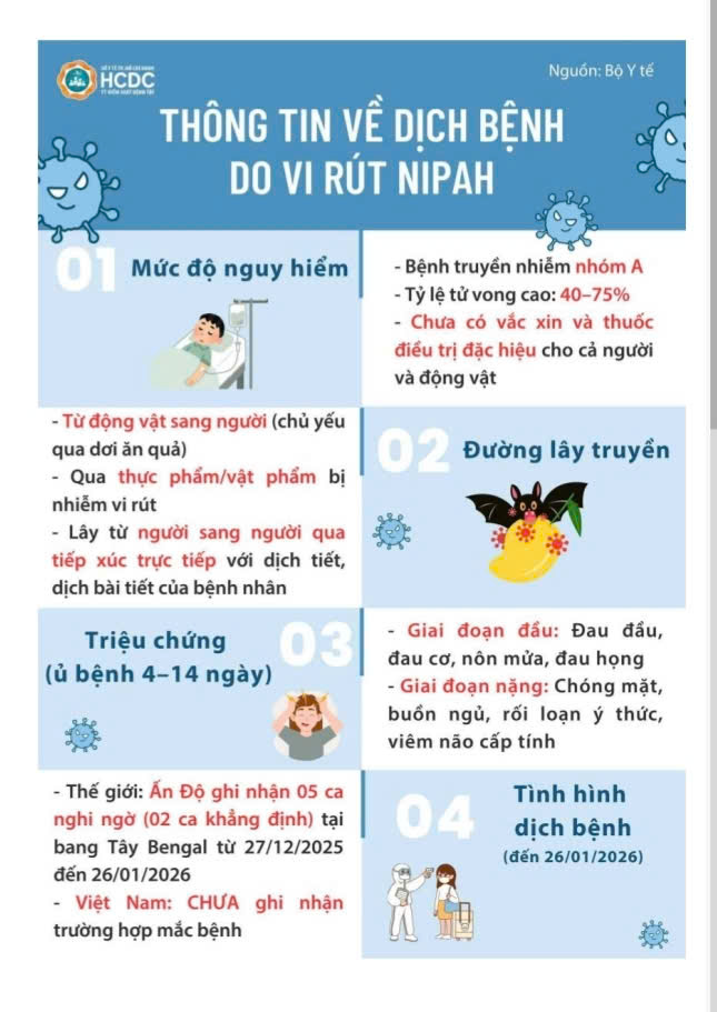 Bệnh Nipah là một bệnh truyền nhiễm do virut Nipah gây ra, có thể lây từ động vật sang người và từ người sang người, trẻ nhỏ có sức đề kháng yếu nên cần được bảo vệ tốt.
